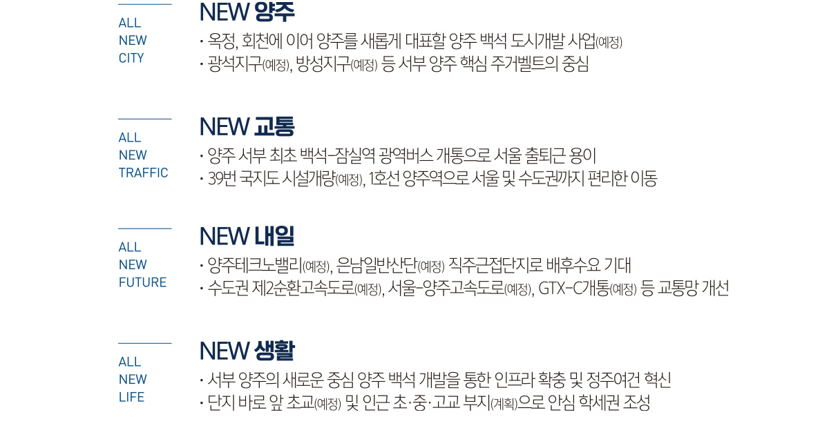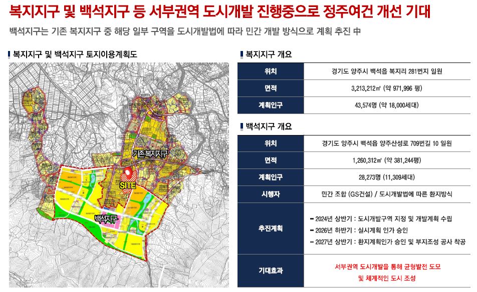 양주 서부권에서는 백석지구를 포함한 대규모 도시개발사업이 활발히 진행 중입니다.