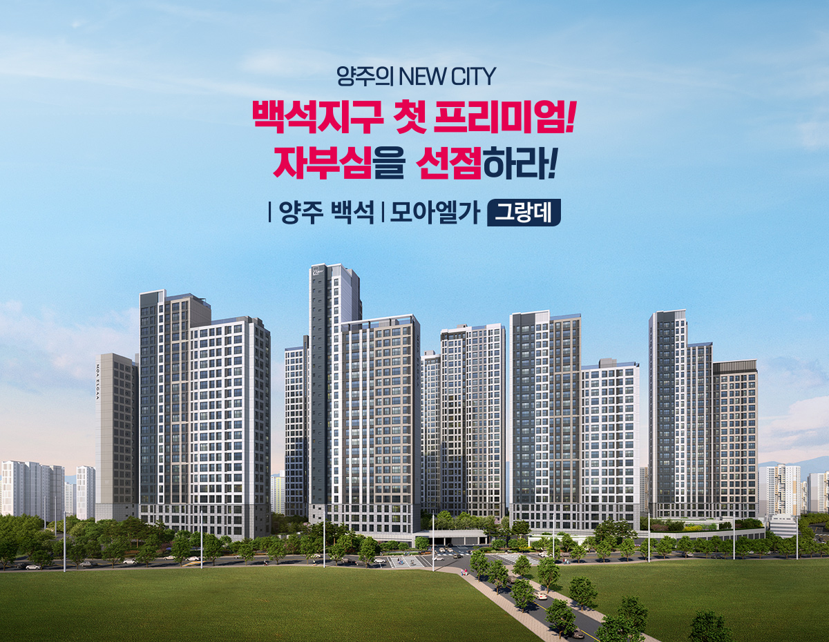 이번 양주 백석 모아엘가 그랑데는 지하 2층~지상 28층, 총 929가구로 구성되어 있으며, 양주의 스카이라인을 새롭게 정의할 랜드마크가 될 것입니다.